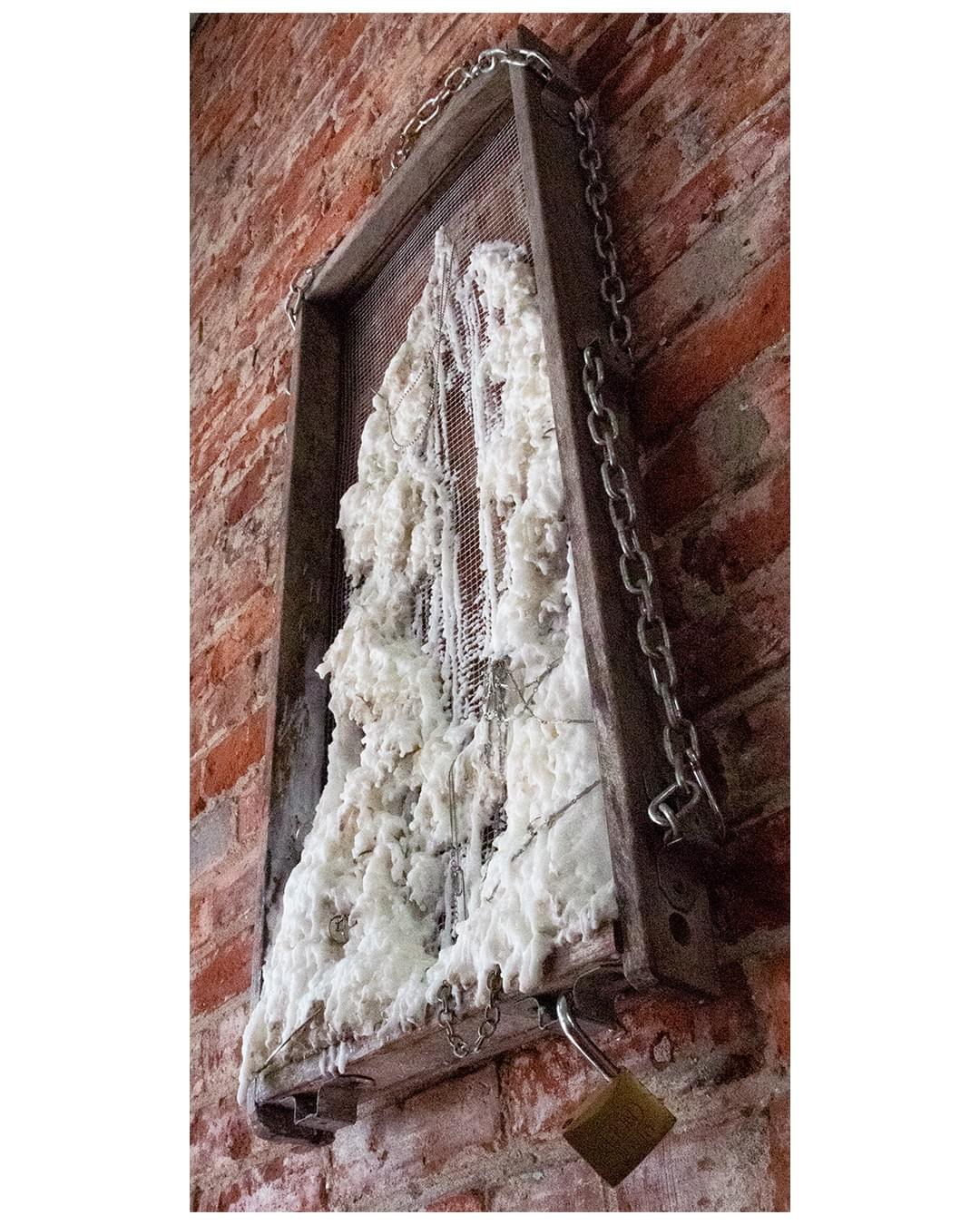 Celebrating queer intimacy, depicting the experience and result, of its title. 𝘮𝘦𝘭𝘵𝘦𝘥 𝘱𝘢𝘳𝘢𝘧𝘧𝘪𝘯 𝘸𝘢𝘹, 𝘴𝘪𝘭𝘷𝘦𝘳 𝘫𝘦𝘸𝘦𝘭𝘭𝘦𝘳𝘺, 𝘳𝘦𝘴𝘪𝘯, 𝘩𝘢𝘳𝘥𝘸𝘢𝘳𝘦 𝘤𝘭𝘰𝘵𝘩 𝘪𝘯 𝘧𝘰𝘶𝘯𝘥 𝘸𝘰𝘰𝘥𝘦𝘯 𝘴𝘵𝘳𝘶𝘤𝘵𝘶𝘳𝘦, 𝘩𝘦𝘭𝘥 𝘣𝘺 𝘪𝘯𝘥𝘶𝘴𝘵𝘳𝘪𝘢𝘭 𝘤𝘩𝘢𝘪𝘯𝘴.